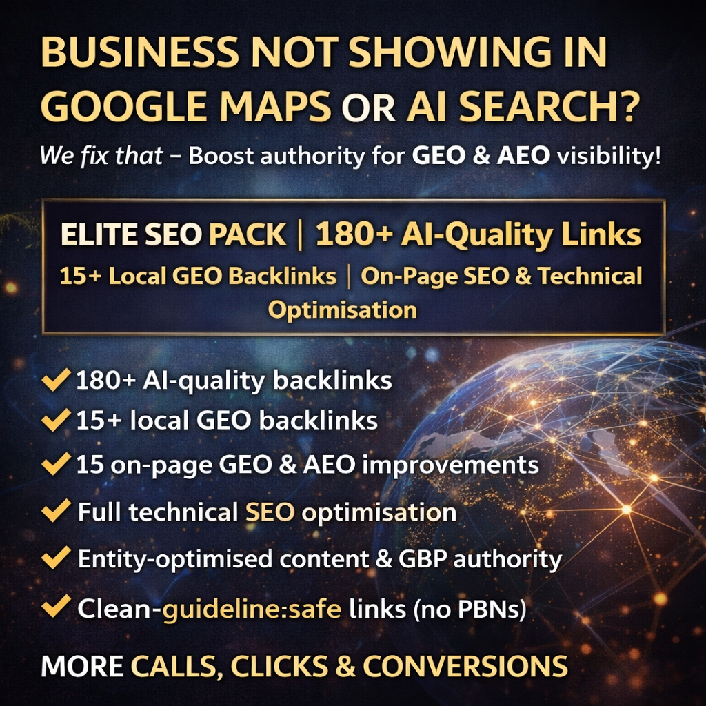 Be the first to review “MONTHLY AI-OPTIMISED LOCAL SEO | GEO • AEO • AUTHORITY BACKLINK BUILDING”
